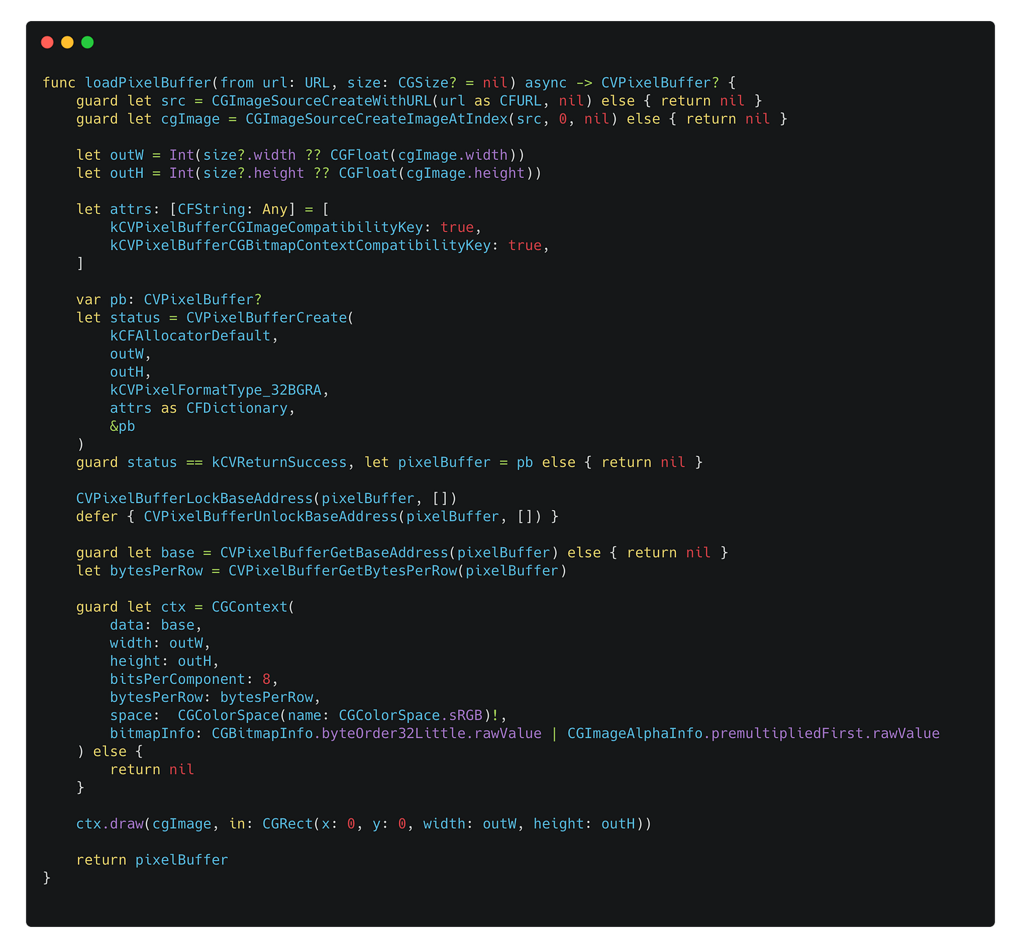 This approach isn’t straightforward, and it’s not that useful, especially when you don’t need to access the underlying bitmap data in a CVPixelBuffer