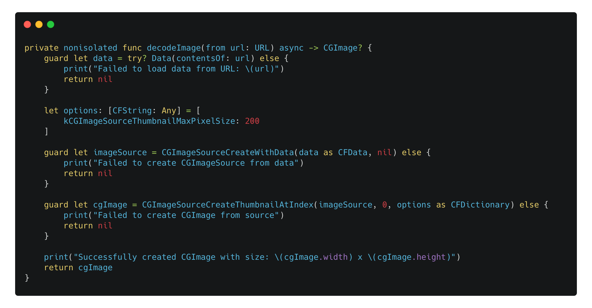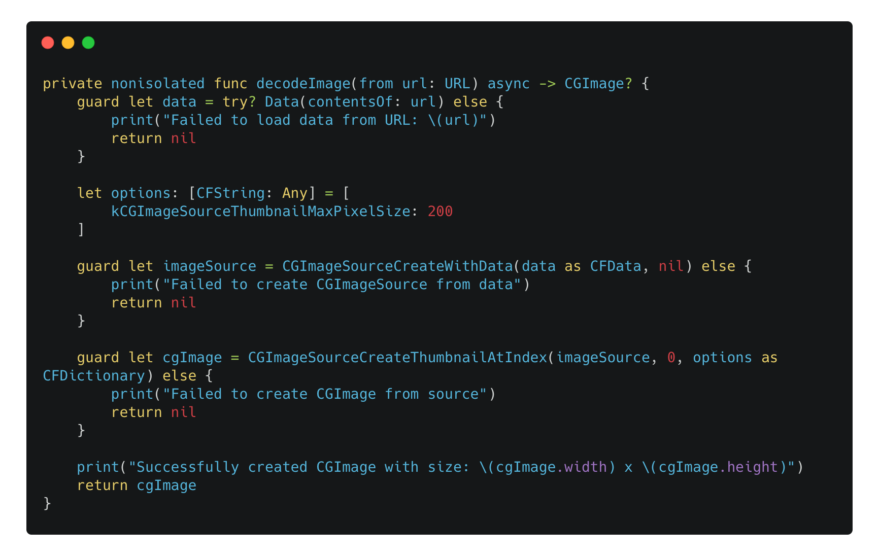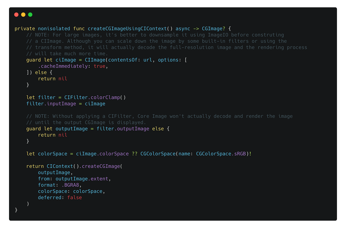 Though sometimes it’s good to just use some 3rd-party libraries like Nuke to display images, especially for those images that aren’t managed by the Xcode Assets. Since we are doing the “raw” way manually, here are some best practices you can follow.