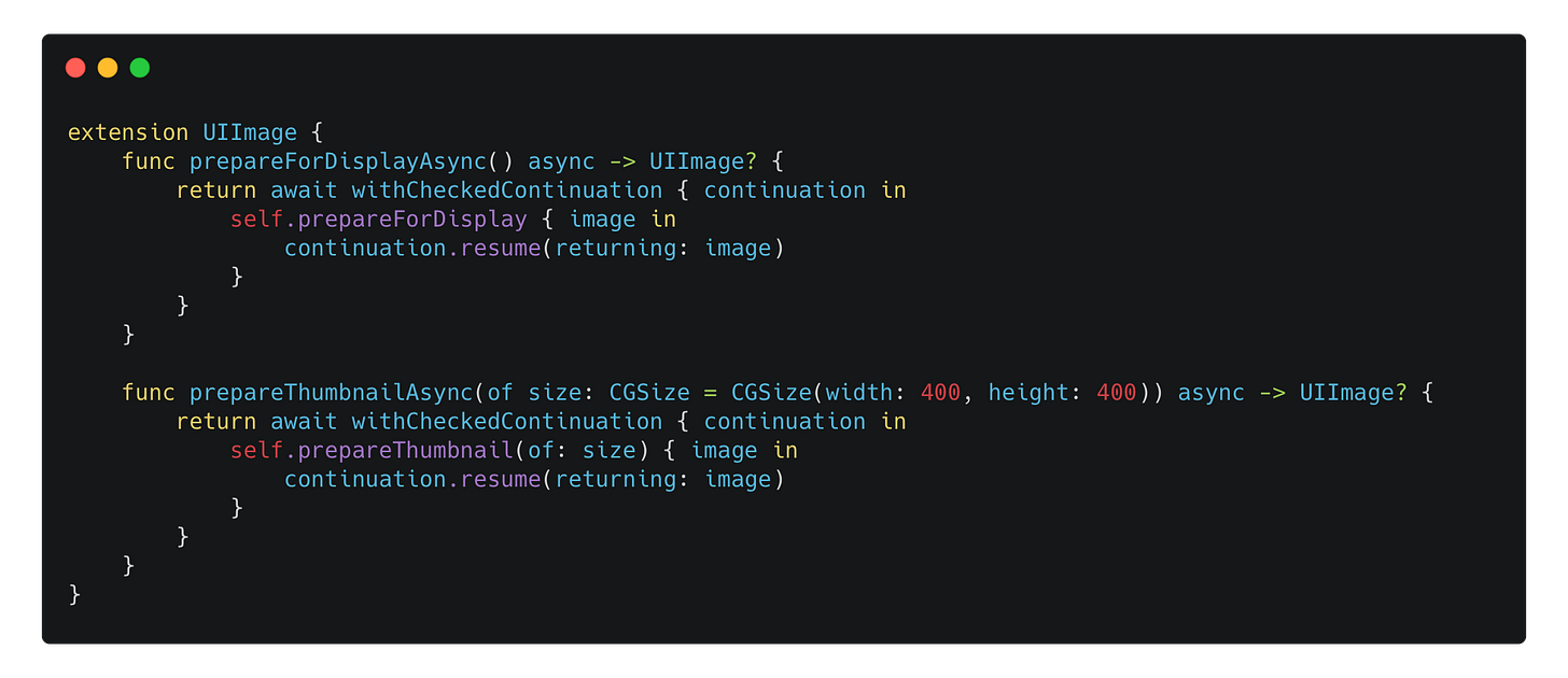method, you can get the thumbnail of a specific size. You can bridge those methods to the Swift Concurrency world: