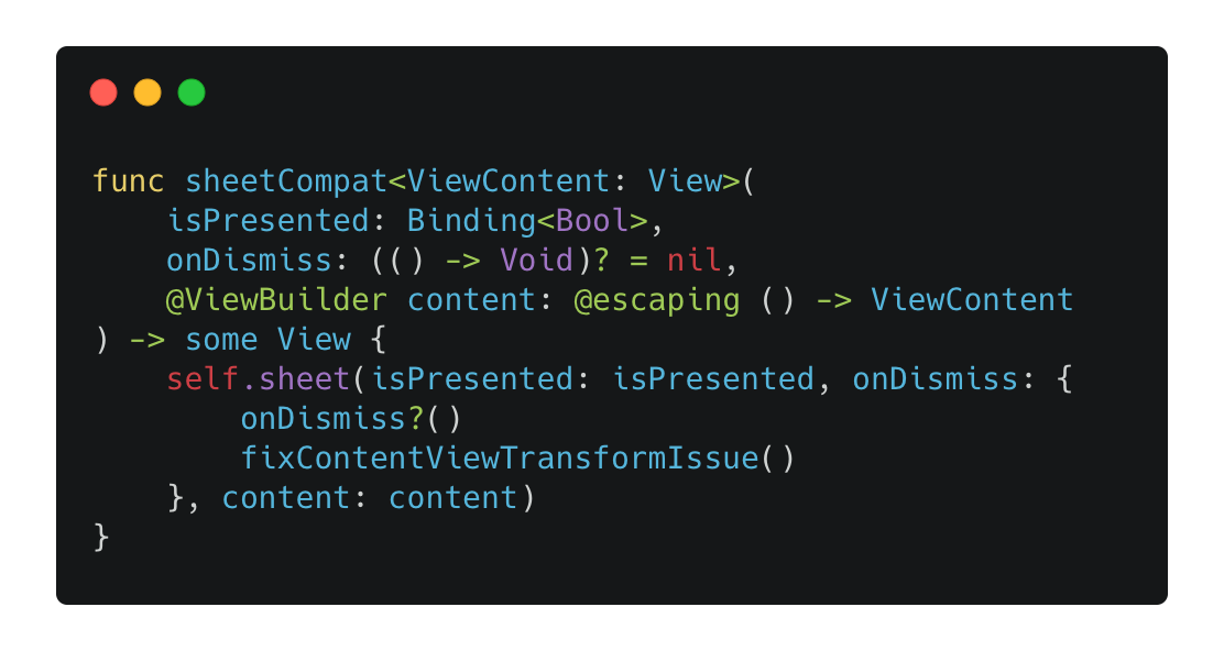 The solution I provided was to make a view extension like sheetCompat
