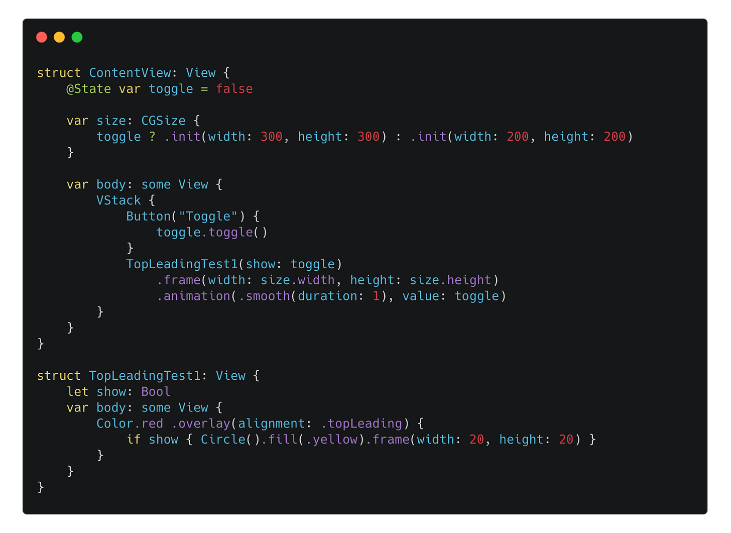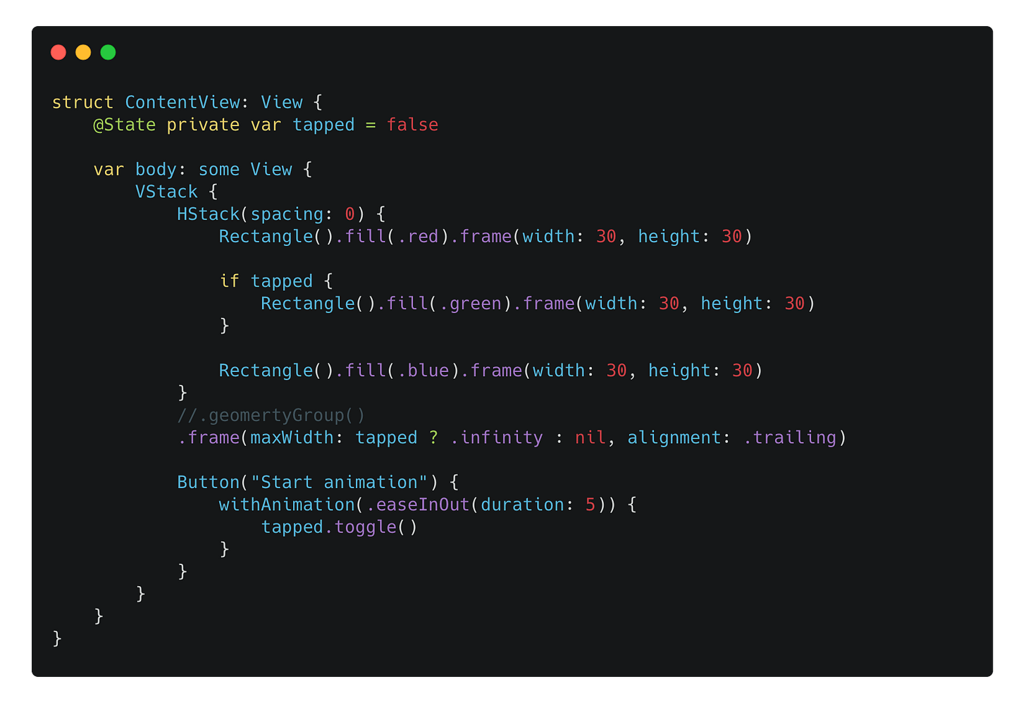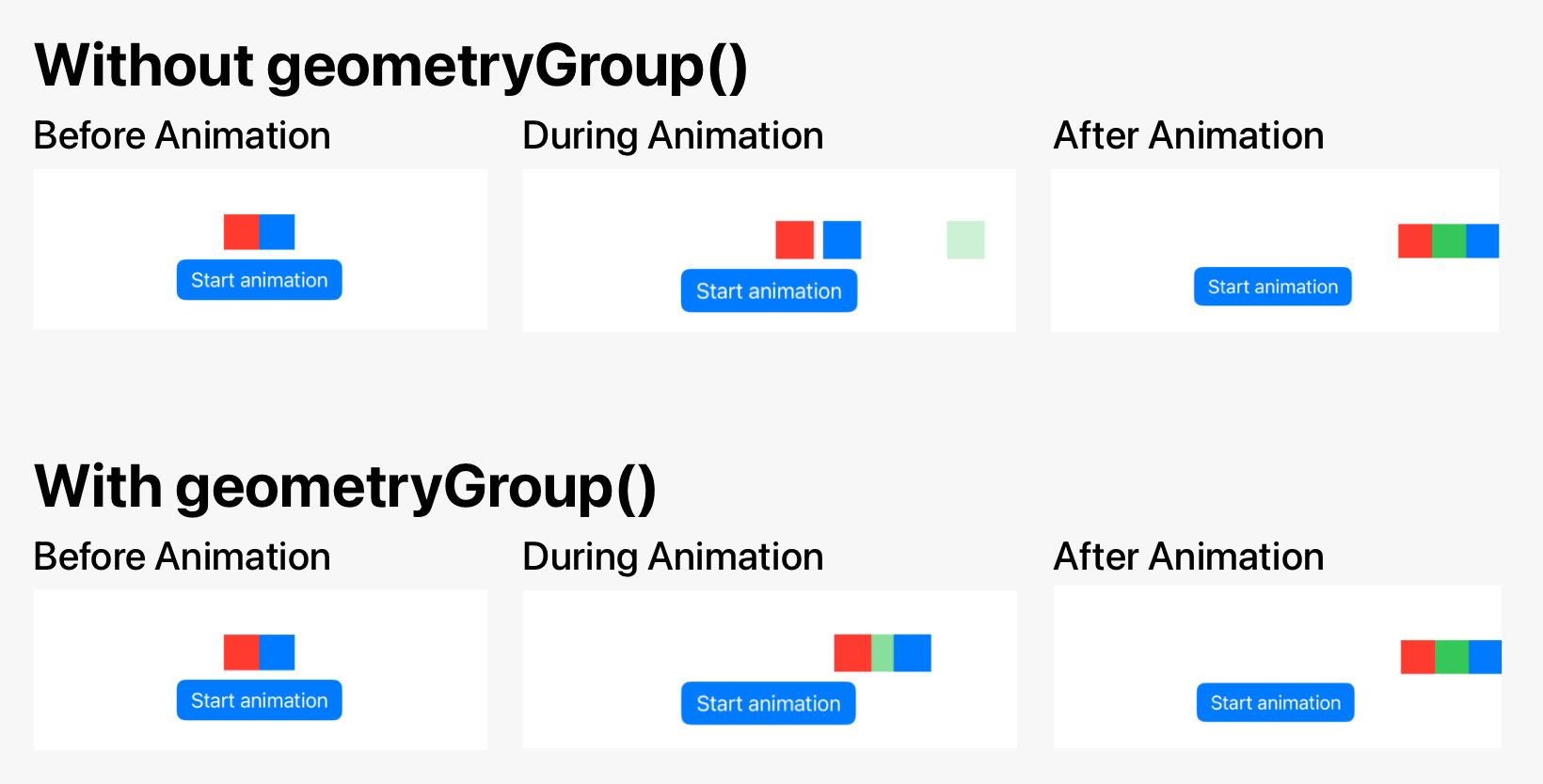 The following example is from Fatbobman’s article: SwiftUI geometryGroup() Guide: From Theory to Practice: