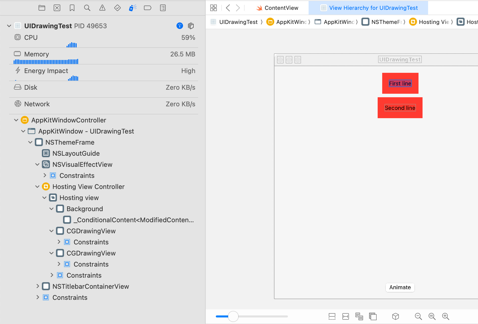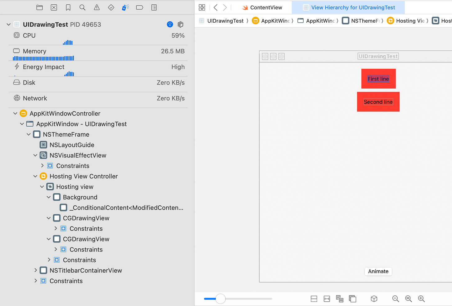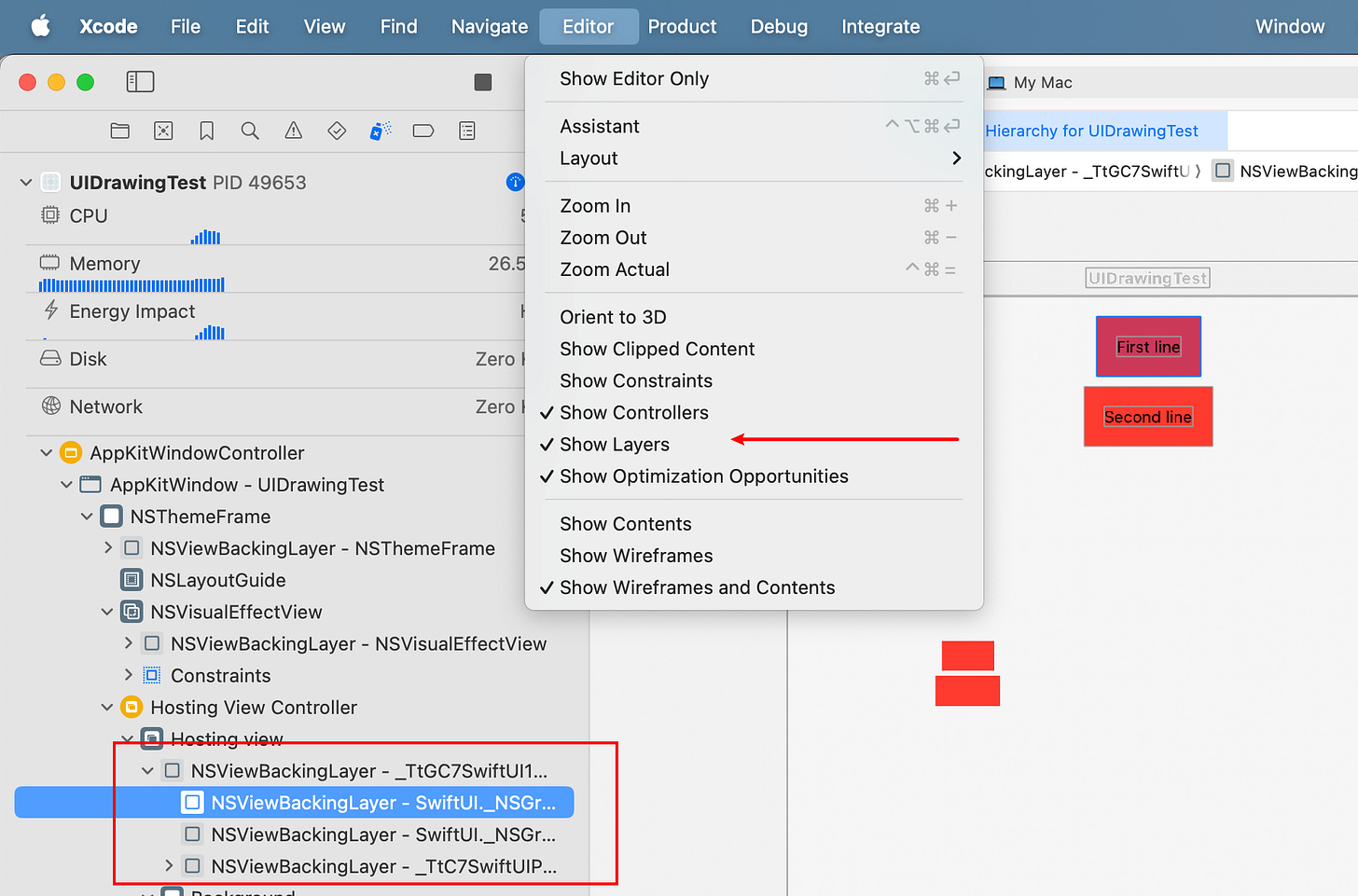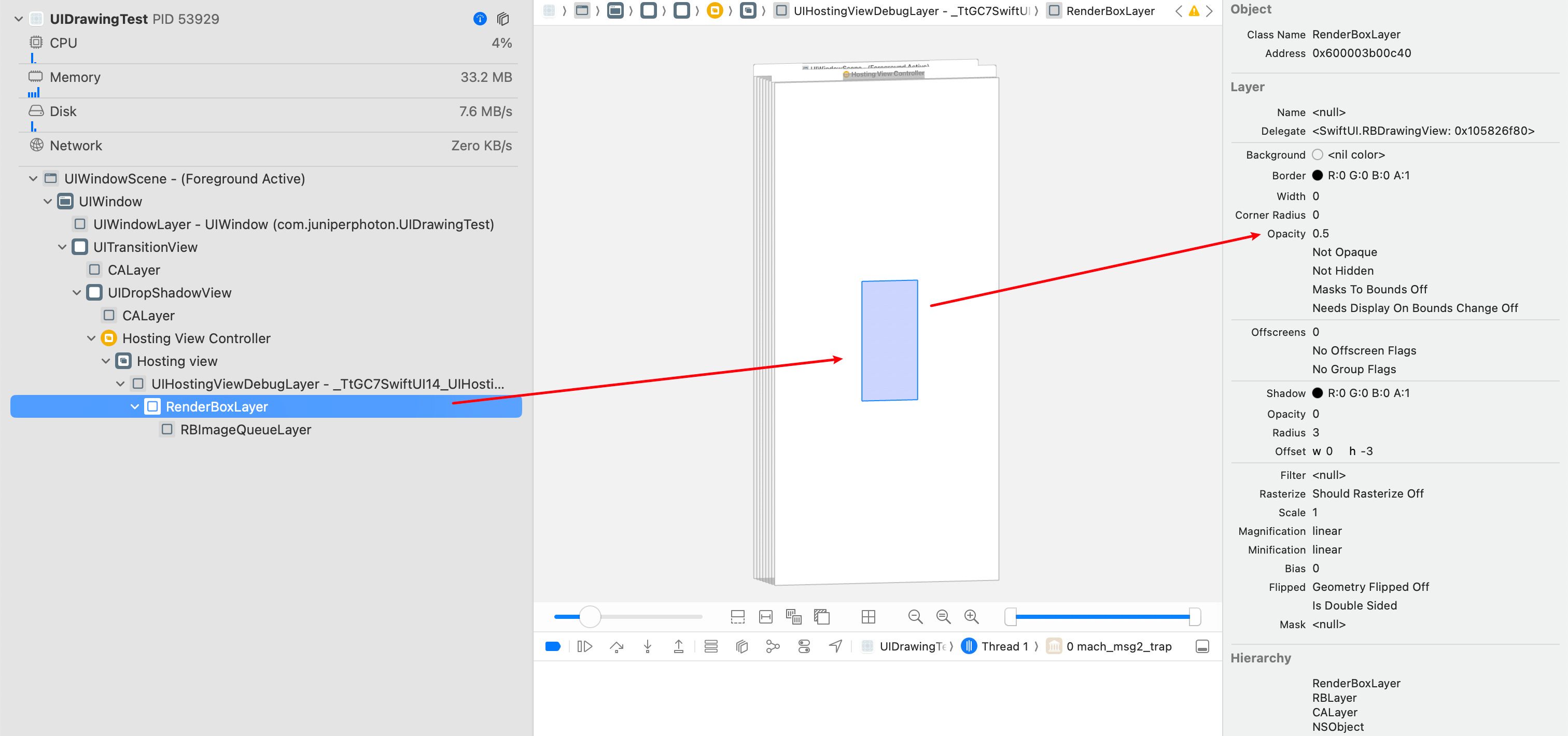 For some unknown reasons, Xcode won’t render the layer correctly in the captured image when using drawingGroup. But it doesn’t affect how we inspect the layer.