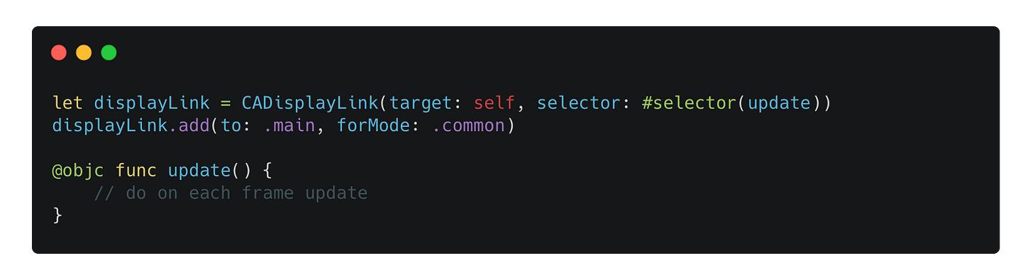 The Core Animation framework serves as the infrastructure between the top-level UI frameworks and the underlying rendering and composition techniques, whether you are using UIKit, AppKit, or SwiftUI to lay out or draw your top-level UI.